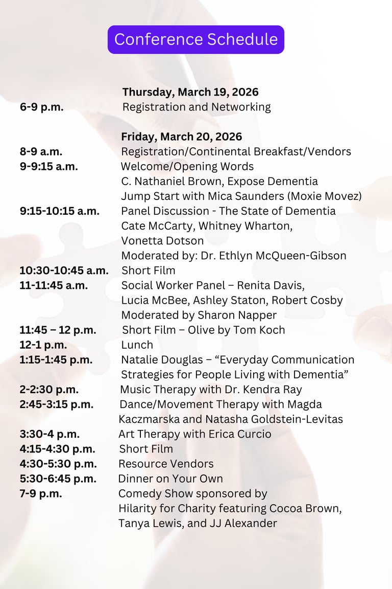 Whether you're a healthcare professional, caregiver, or simply curious about dementia, this conference is for you. Don't miss out on this valuable opportunity to expand your knowledge and make a difference in the fight against dementia! Join us as we expose dementia together.